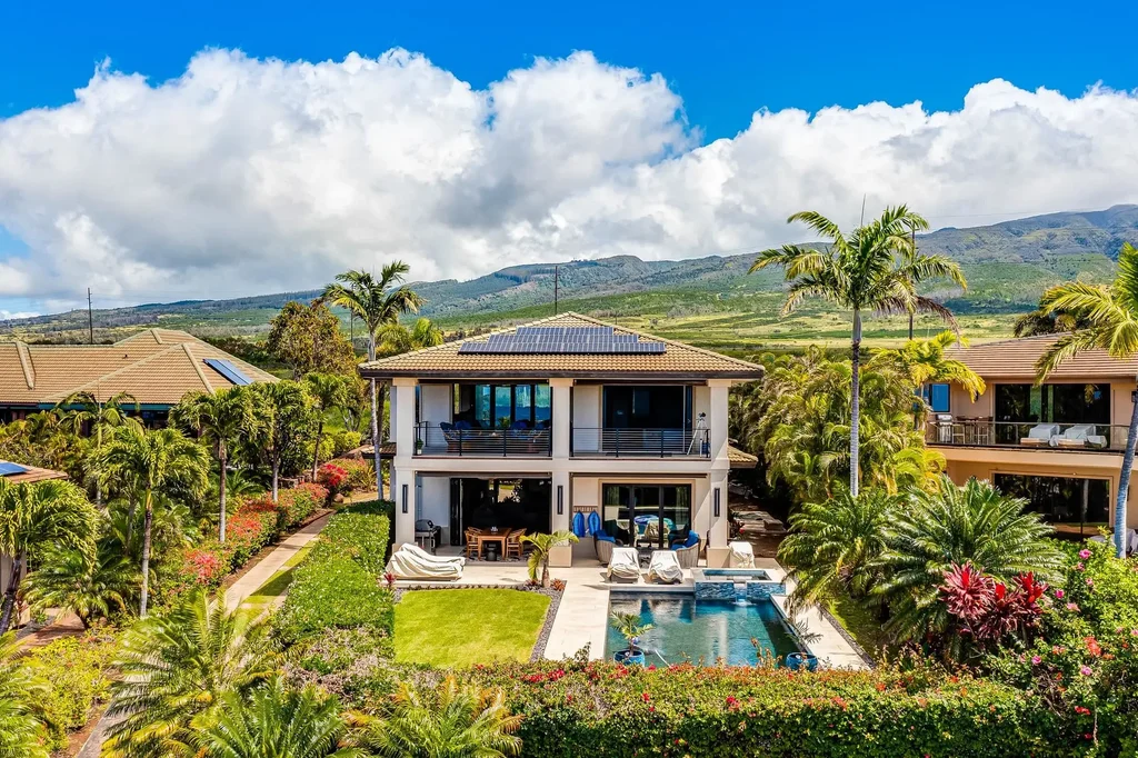 Located in the prestigious double-gated Summit neighborhood in the Ka'anapali Golf Estates, 377 Wekiu Place unveils a freshly updated luxurious retreat that marries contemporary design with a captivating West Maui setting. The 3,694-square-foot, four-bedroom, 3.5-bath home offers all the features and amenities one expects in a Maui luxury home, including Photovoltaic panels and solar water heating. Newly renovated, 377 Wekiu is bright and airy, with incredible contemporary wood finishes complementing bright and airy spaces. Ample windows let warm, Hawaiian light into the interior spaces, which connect to several outdoor covered lanais, allowing residents to enjoy an idyllic indoor-outdoor lifestyle. A vaulted ceiling in the great room accentuates its spaciousness, while panoramic views of Lana'i, Moloka'i, and the Pacific Ocean paint an ever-changing mural beyond the expansive lanai. Designed for entertaining, the gourmet kitchen has a fresh, clean look, and seamlessly flows into the Great Room. Also, a comfortable family room, complete with a built-in bar sink and refrigerator, offers a cozy spot to unwind, backlit by views of the inviting pool and spa through double sliding doors. The unique reverse living floor plan takes full advantage of Maui's natural splendor, with sunsets to the West and sunrises over Pu'u Kukui and the West Maui Mountains to the East. For guests, a mini Primary Bedroom Suite downstairs and two additional bedrooms provide comfort and privacy. Upstairs, the Primary Bedroom Suite beckons as a private, elegant space where you can retreat from the world and relax, taking in sweeping ocean views from the bed. The upstairs lanai is the perfect setting for al fresco dining or simply basking in the beauty of the surroundings. The recently resurfaced swimming pool and jetted spa sparkle in the backyard. It is the perfect place to begin your day with a swim and is the ultimate focal point during events and gatherings. Conveniently equipped with a spacious double garage, this residence is an unparalleled opportunity for those seeking a turnkey island lifestyle. Available 05/01/2025 Screening: Tenant agrees to submit to third party (TransUnion) tenant screening prior to approval