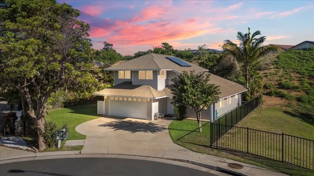 Welcome to this well-maintained home located in the desirable Maui Lani subdivision of Kahului. Tucked away on a quiet cul-de-sac, this property sits on a large 11,012 sq ft lot (approximately 0.25 acres), offering privacy, rare outdoor space, and room to expand, garden, or further customize. The home features a versatile two-level floor plan with one bedroom and one full bath on the main level, ideal for guests, multi-generational living, or a home office. Upstairs, you’ll find three additional bedrooms and two full baths, providing excellent separation and functionality. The living room showcases soaring vaulted ceilings, creating an open, airy feel and a strong sense of space and natural light. Enjoy year-round comfort with central air conditioning throughout the home, and an open dining area off the kitchen that flows easily for everyday living and entertaining. The property has also been upgraded to a 200-amp electrical service, adding long-term value and flexibility for future improvements. Conveniently located near schools, medical facilities, shopping, restaurants, and The Dunes at Maui Lani Golf Course, this home combines comfort, space, and location within one of Kahului’s most established neighborhoods. A must-see to truly appreciate the quiet setting, generous lot size, and thoughtful layout.